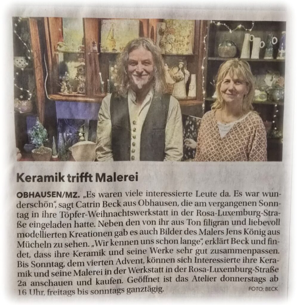 Am dritten Advent wird es in meiner Töpferwerkstatt in Obhausen, ein kleines kreatives Adventstreffen geben.